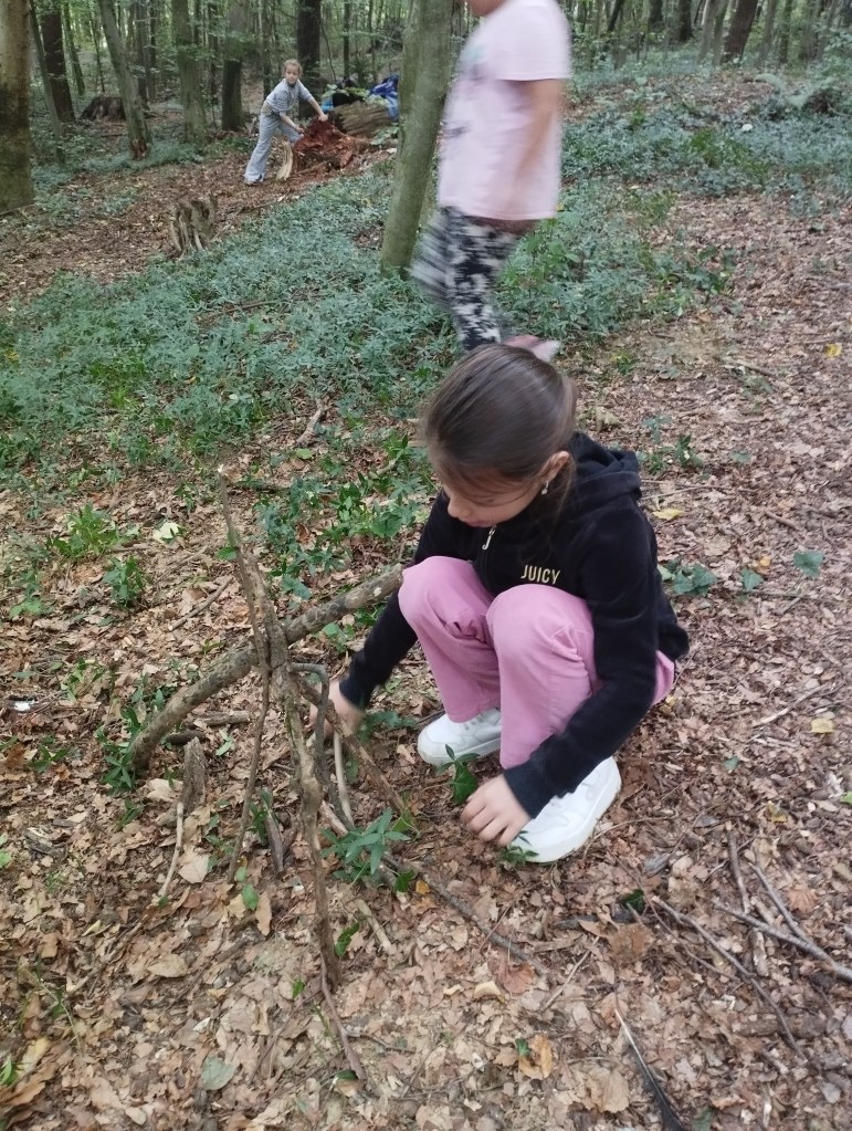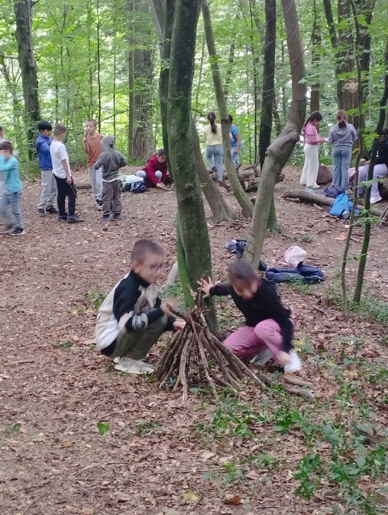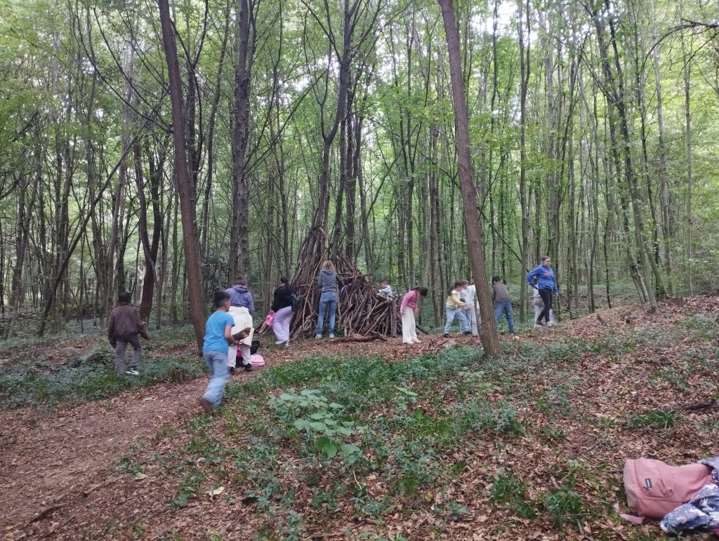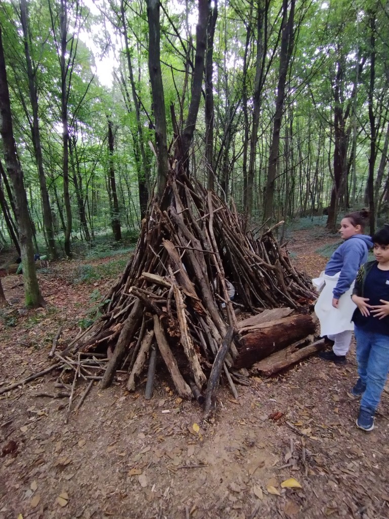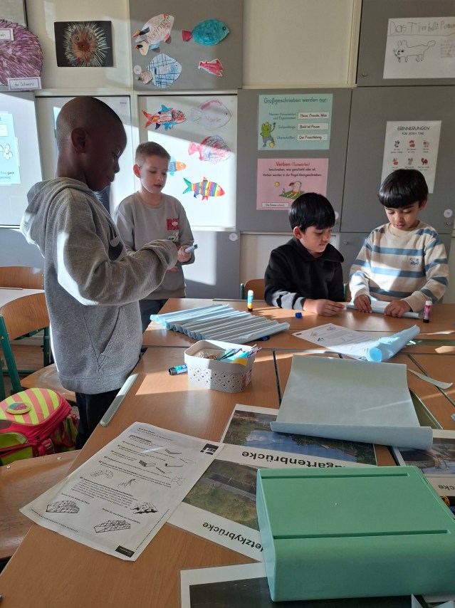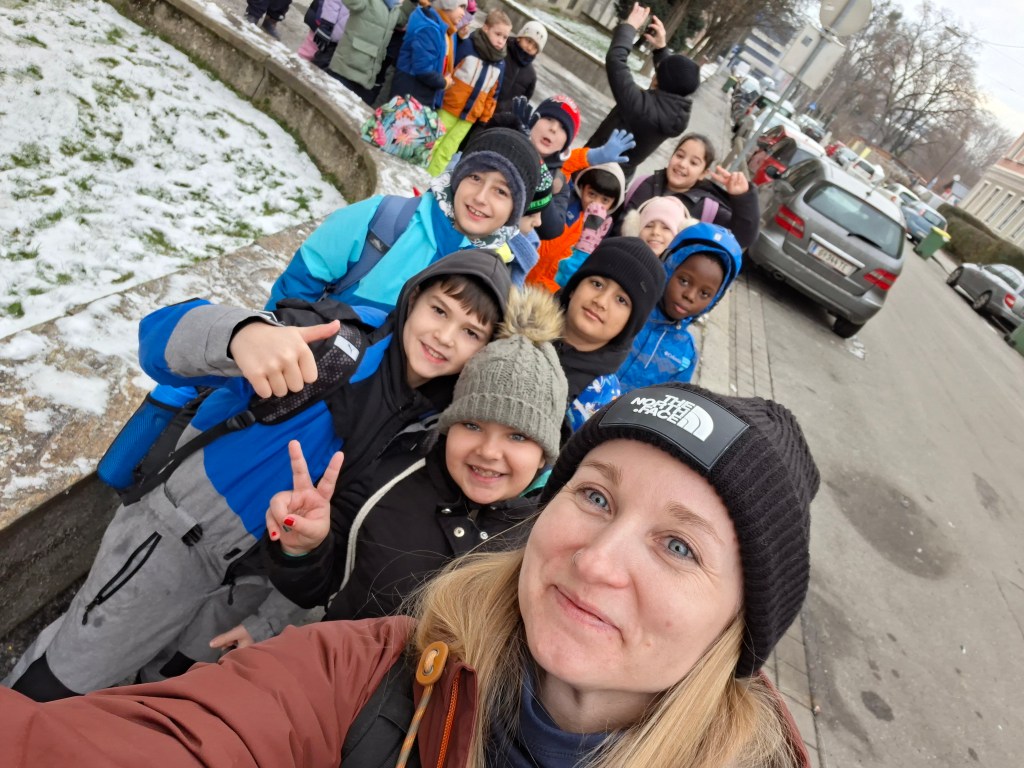 Unser erster Wandertag führte zum Hilmteich und in den Leechwald. Wir bauten Häuser im Wald und entdeckten viele Tiere wie Kröten, Schnecken, Raupen und viele mehr. Es war ein aufregender Tag in der Natur!