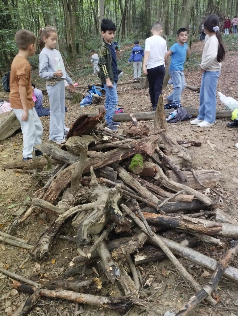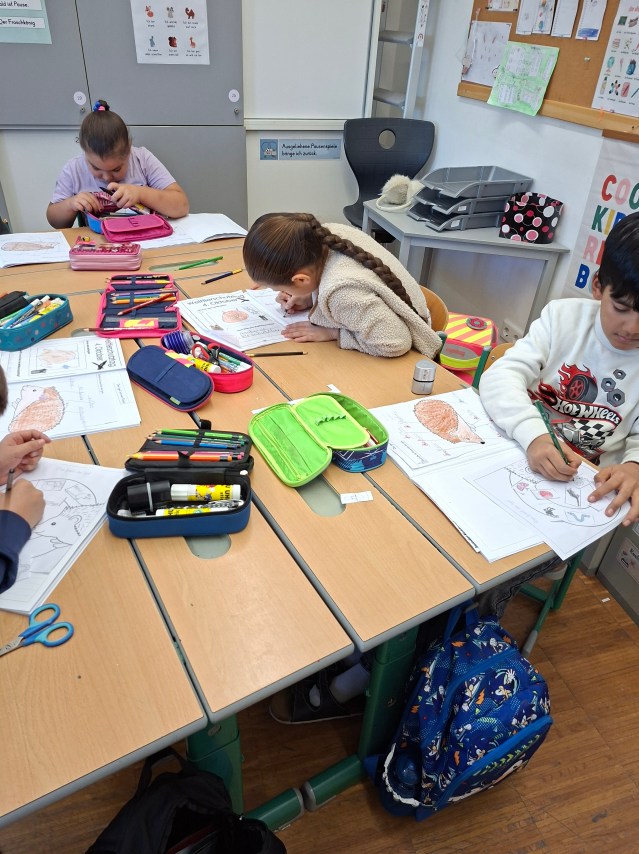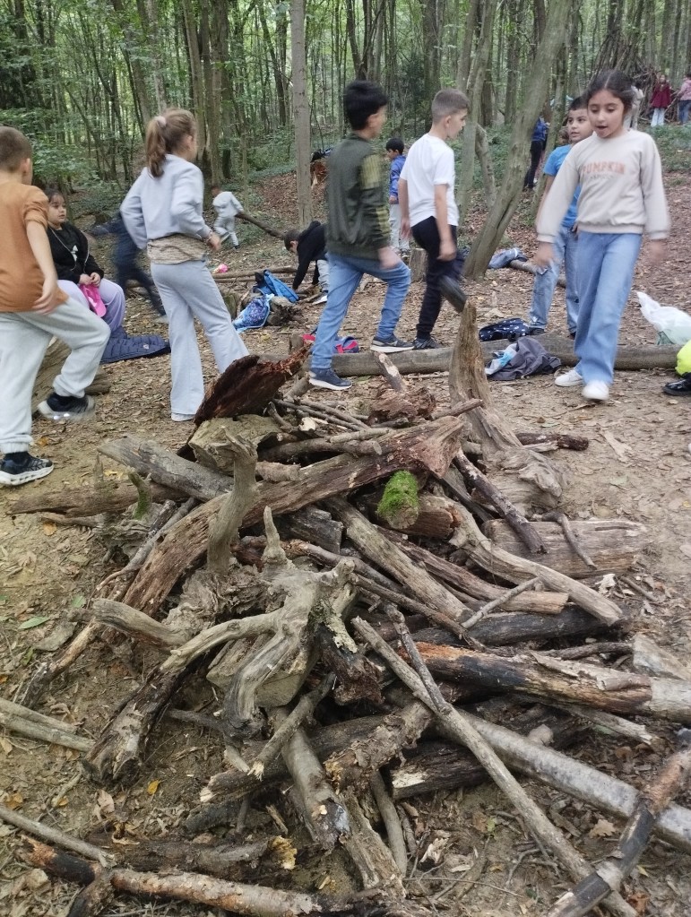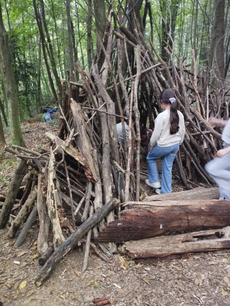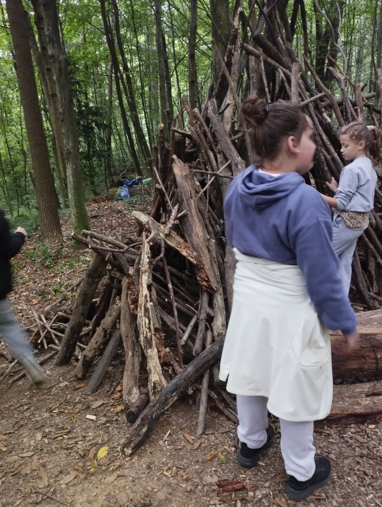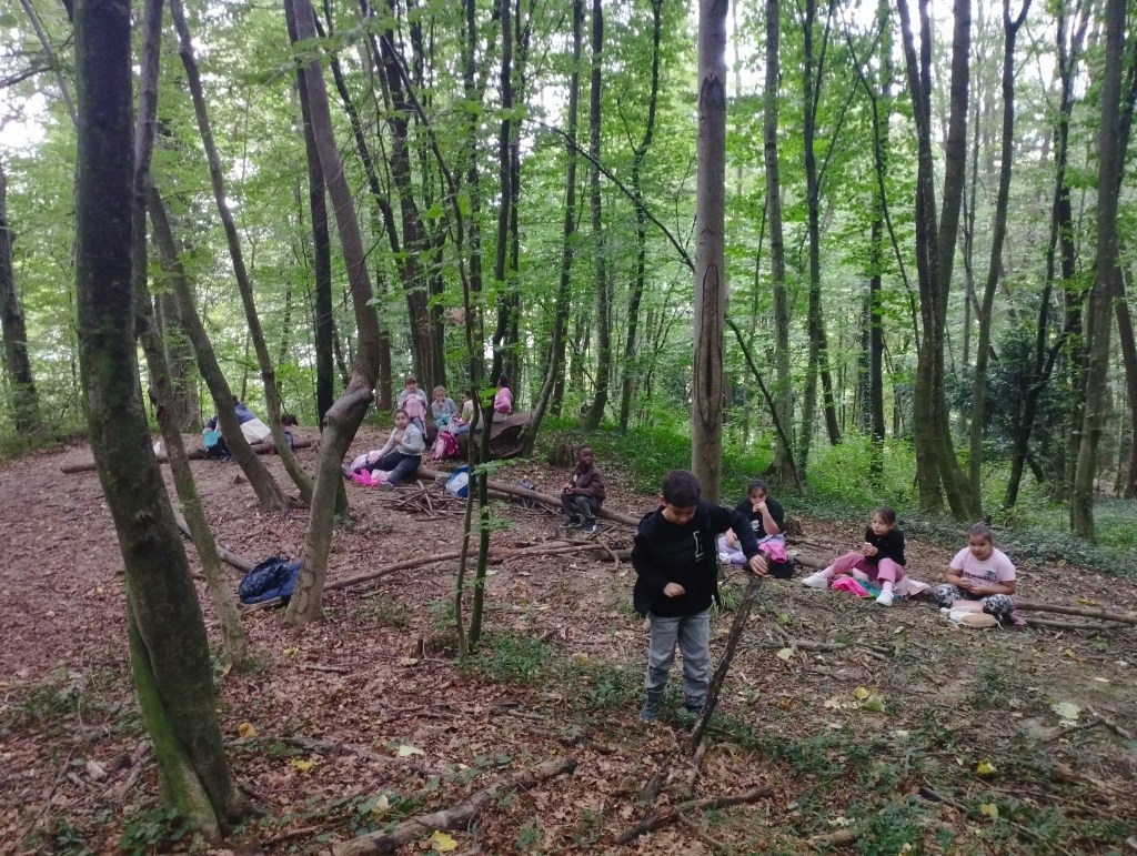 Unser erster Wandertag führte zum Hilmteich und in den Leechwald. Wir bauten Häuser im Wald und entdeckten viele Tiere wie Kröten, Schnecken, Raupen und viele mehr. Es war ein aufregender Tag in der Natur!