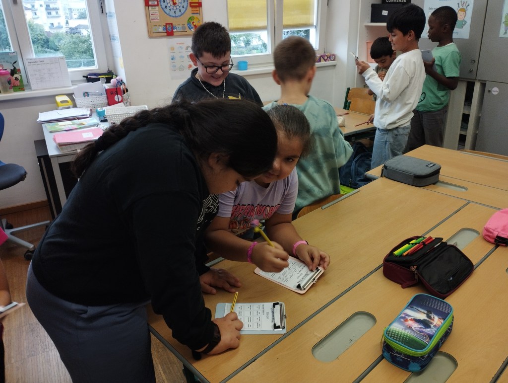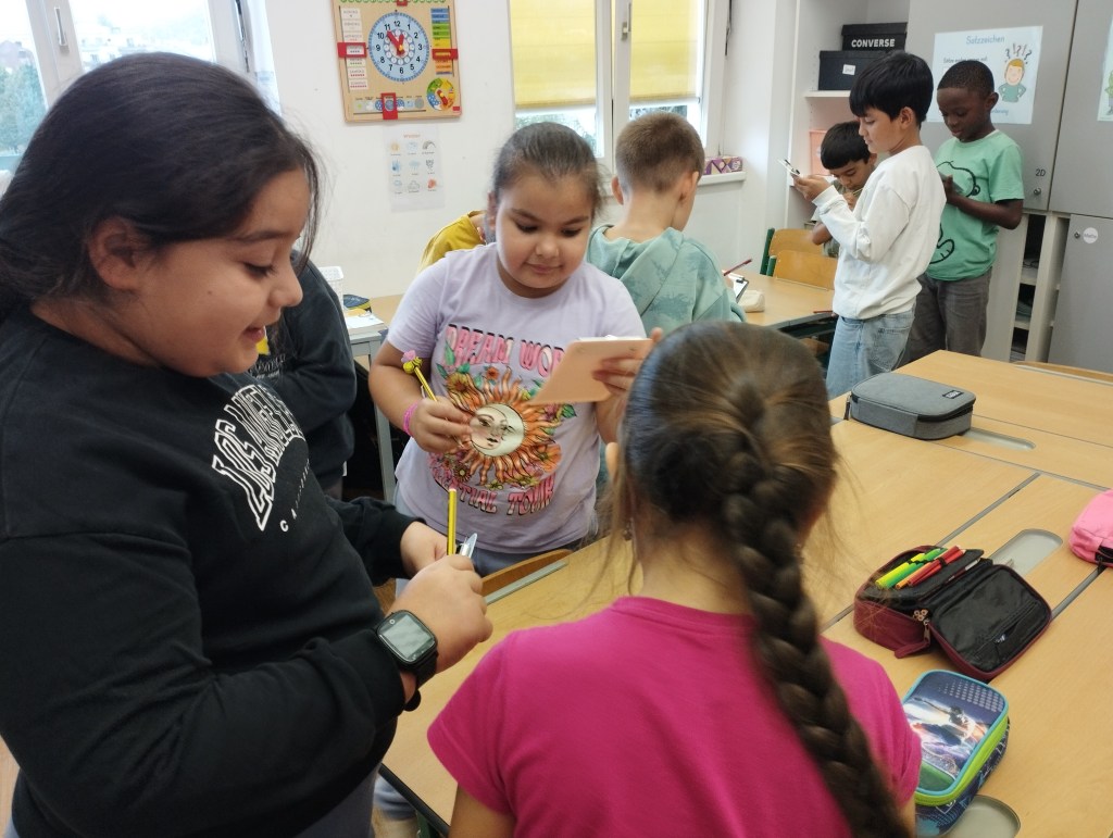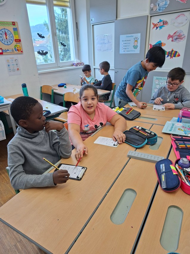 Die Kinder lernen sich beim Kennenlern-Bingo auf spielerische Weise besser kennen.