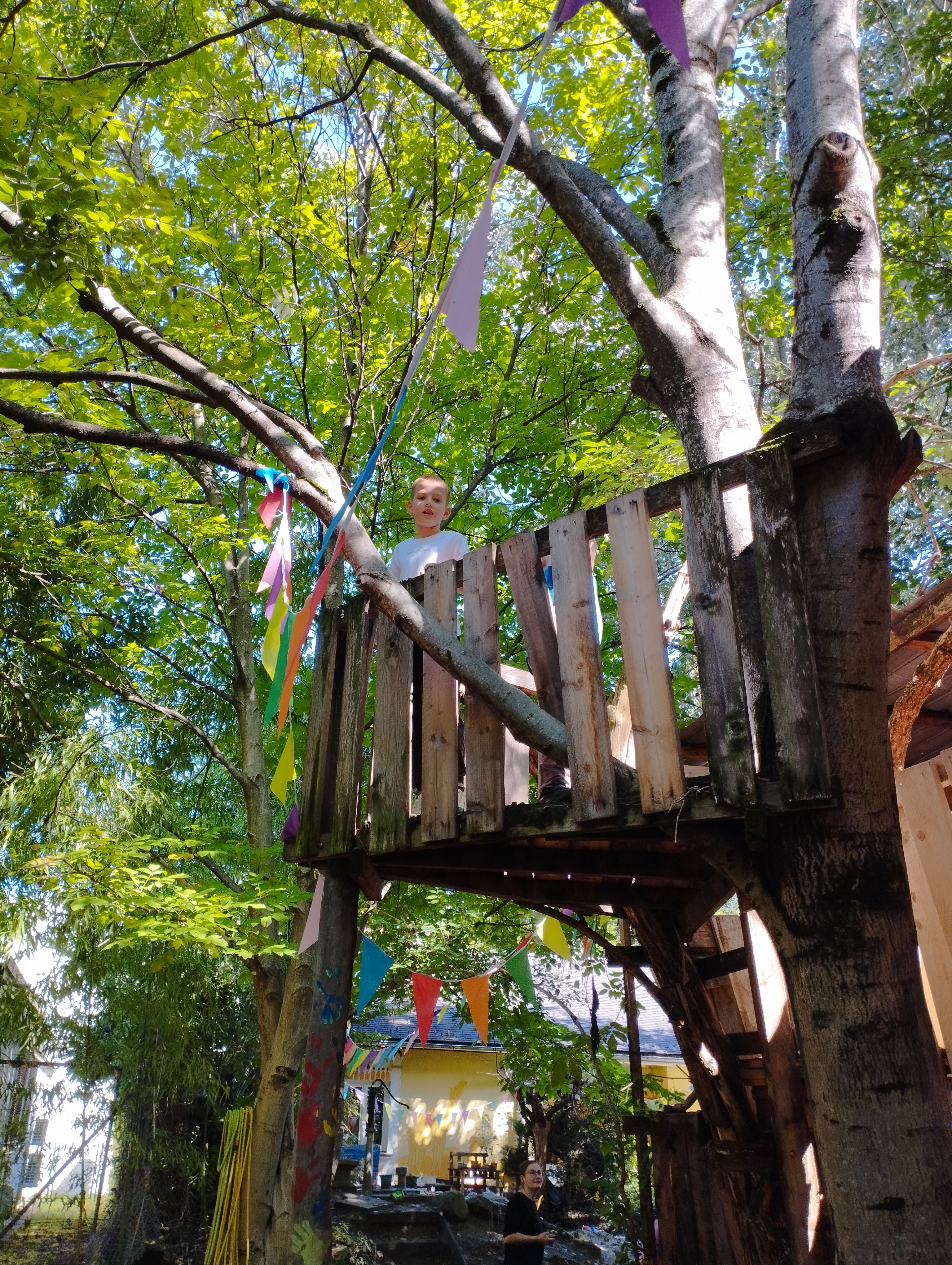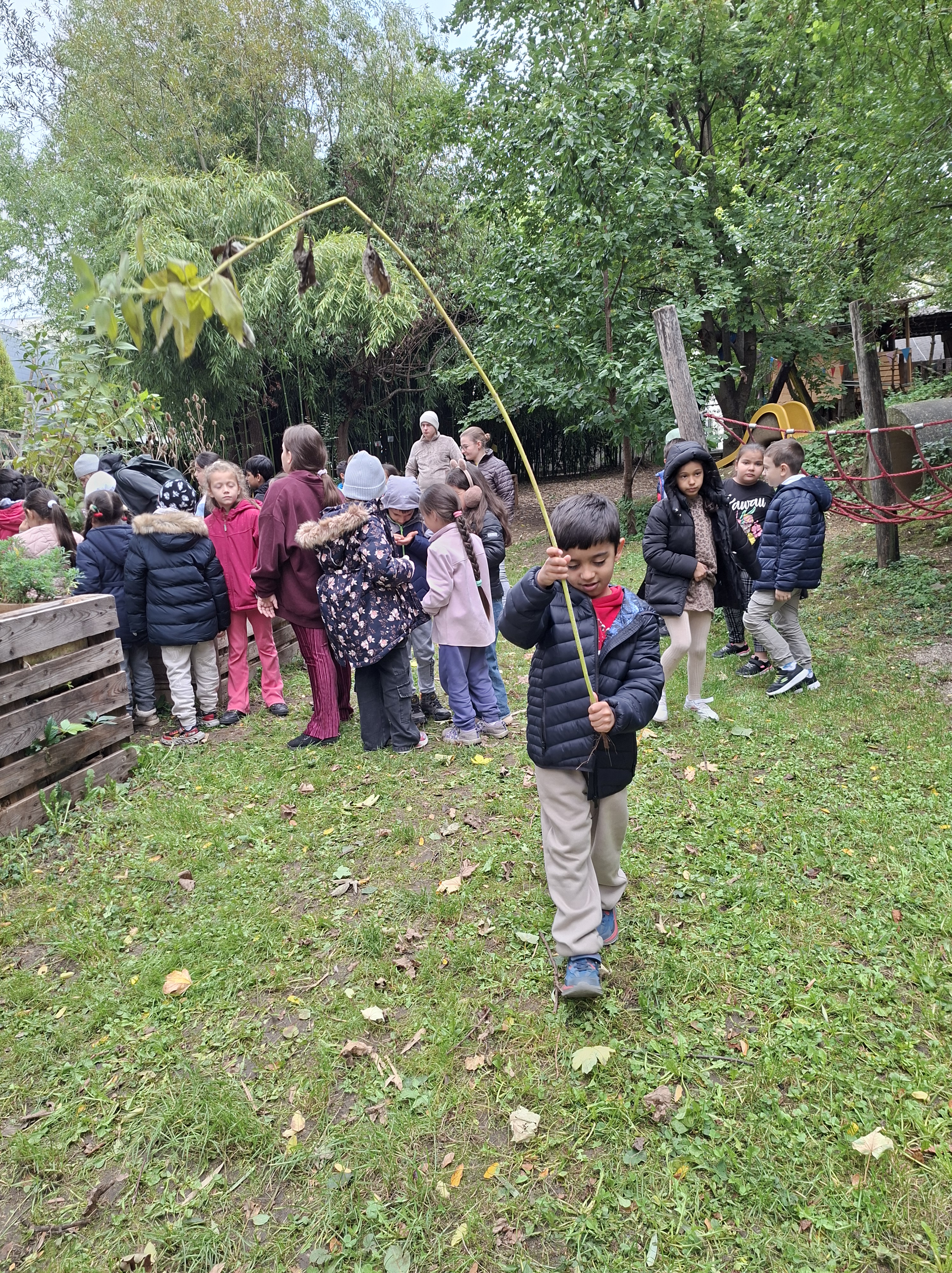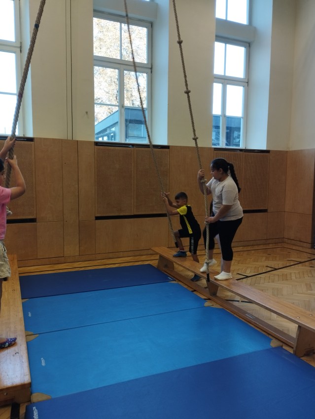 Beim Abenteuerspielplatz konnten wir klettern und spielen. Es gab viele tolle Sachen zu entdecken. Wir hatten viel Spaß und es gab leckere Schnittlauchbrote. Das Beste daran war, dass wir den Schnittlauch selbst im Garten gepflückt haben. Wir hatten auch die Möglichkeit, frisches Gemüse aus dem Garten zu ernten und zu genießen. Es war ein super Tag voller Spaß, Bewegung und Gemeinschaft!