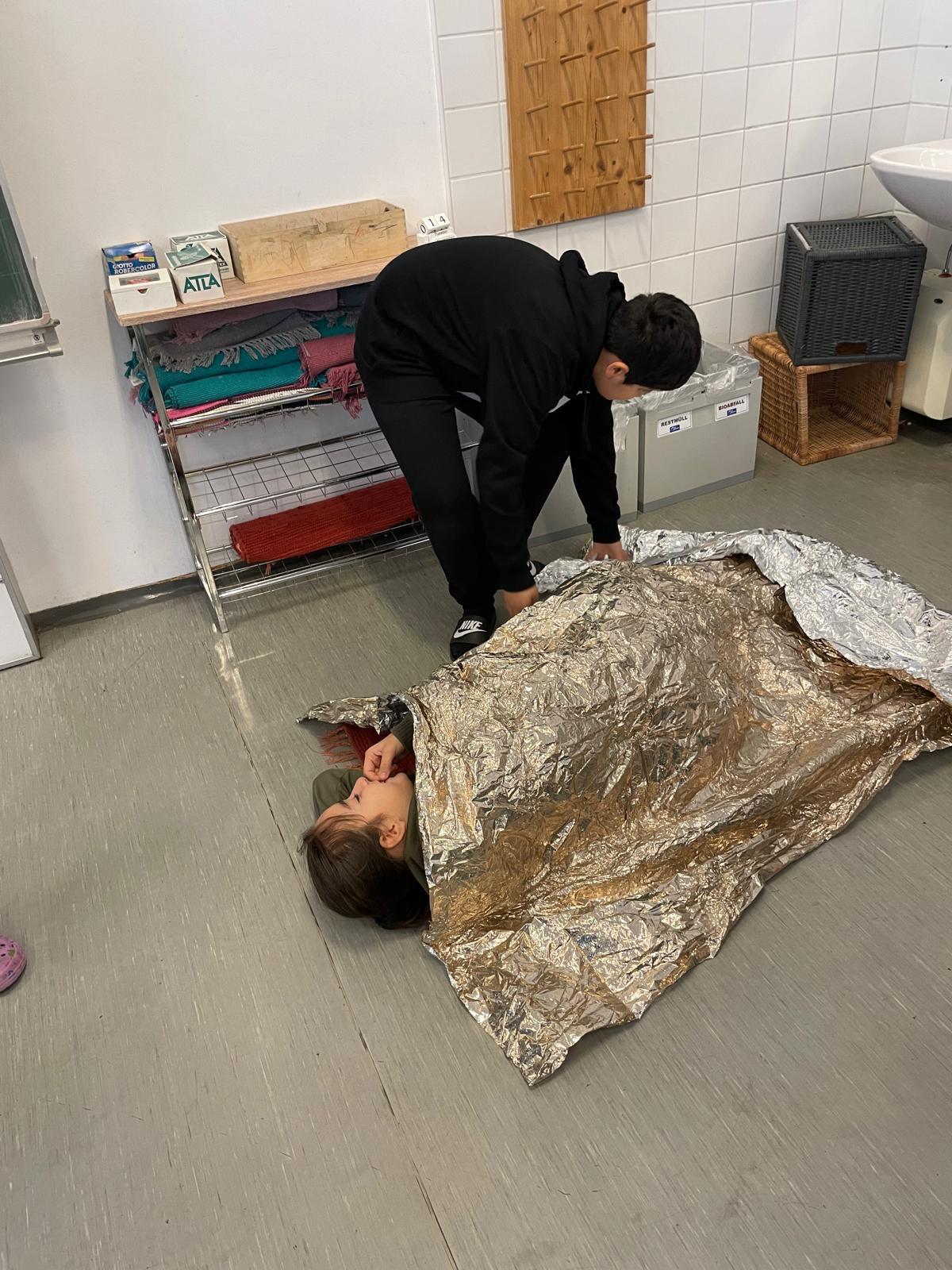 Im Erste-Hilfe-Kurs an der Volksschule Gabelsberger lernen die Schülerinnen und Schüler spielerisch die Grundlagen der Ersten Hilfe. Dabei wird ihnen vermittelt, wie man in Notfallsituationen schnell und richtig reagiert, zum Beispiel durch das Absetzen eines Notrufs oder das Anlegen von Verbänden. Der Kurs fördert das Verantwortungsbewusstsein und stärkt das Selbstvertrauen der Kinder, indem sie lernen, anderen zu helfen. Durch praktische Übungen werden die wichtigsten Handgriffe trainiert, sodass die Kinder im Ernstfall vorbereitet sind. Der Kurs ist eine wertvolle Ergänzung für den Schulalltag und vermittelt wichtige Lebenskompetenzen.