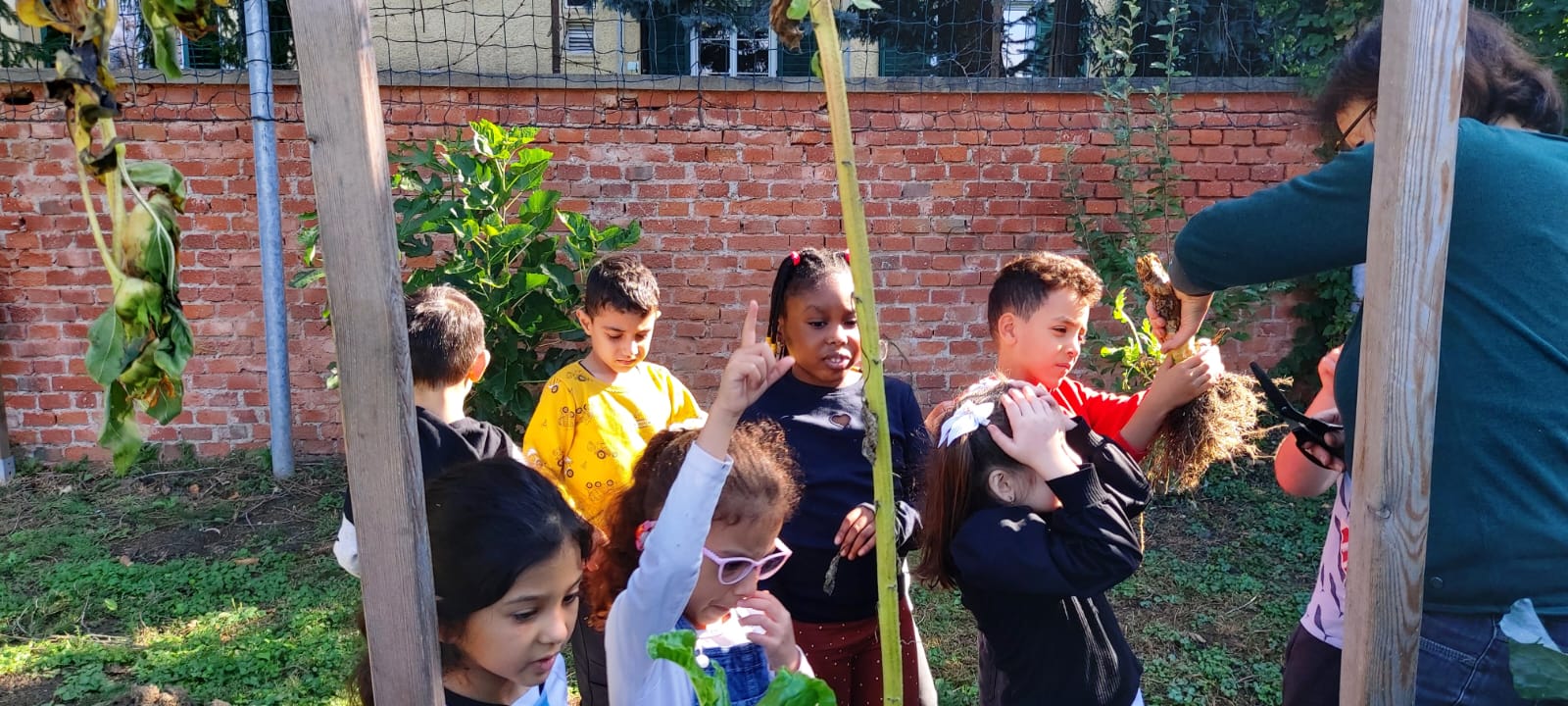 Heuer im März war es endlich soweit – unser Schulgarten entstand in Kooperation mit dem Projekt “Schulgart`ln“, ein Angebot des Forums Urbanes Gärtnern. In einigen Workshops entstanden Gemüse- und Hochbeete, Naschhecken, Obstbäume und eine gemütliche Sitzecke als ansprechender Raum für einen handlungsorientierten Unterricht und bewegte Pausen an der frischen Luft. Kinder können sich draußen schneller erholen und entspannen, sie sind ausgeglichener und die Konzentrationsfähigkeit steigt. Die gesunde Entwicklung und die Kooperationsfähigkeit unserer Schulkinder wird so unterstützt. Die motivierende Arbeit im Freien fördert die Klassengemeinschaft und auch die Konfliktlösekompetenz wird gestärkt. Ökologische Prozesse wie Wachstum oder Verrottung können im Jahresverlauf beobachtet werden. Die Jahreszeiten und ihre Naturgesetze und Wetterphänomene können in der natürlichen Umgebung unseres Schulgartens ihre volle Wirkung zeigen. Schülerinnen und Schüler können im Schulgarten die Zusammenhänge allen Lebendigen sowie die eigene Selbstwirksamkeit gut erkennen. Die Gartenarbeit ist sehr motivierend und schult motorische, sensorische und soziale Fähigkeiten innerhalb der Klasse. Außerdem wird automatisch Bewegungsmangel vorgebeugt, das Immunsystem gestärkt und die Fein- und Grobmotorik verbessert.